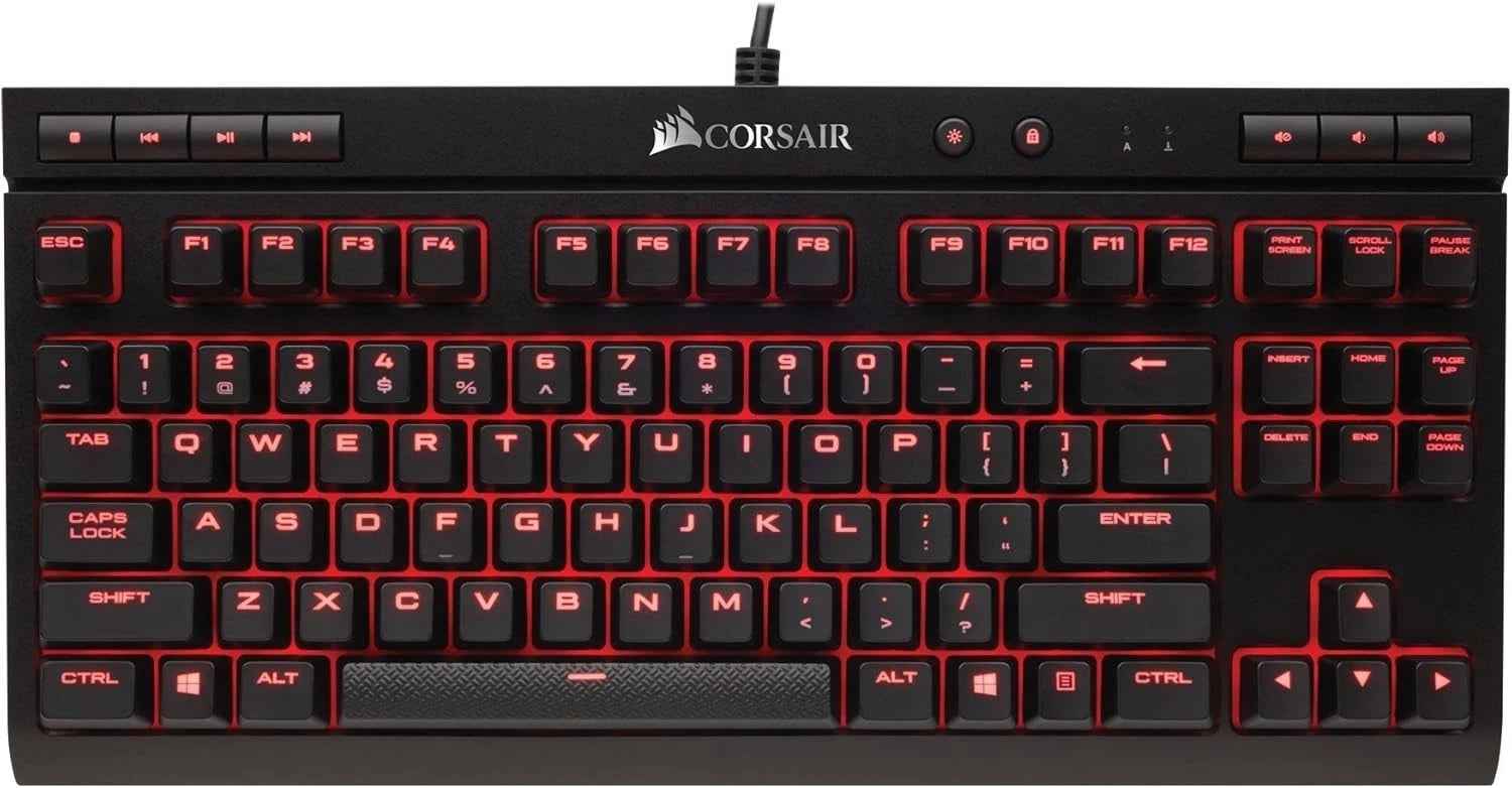 The CORSAIR K63 features a tenkeyless design and CHERRY MX Red mechanical keyswitches for ultimate performance. Brilliant per-key, red LED backlighting enables dynamic and virtually unlimited lighting adjustability.
